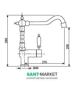 Смеситель для кухни Bugnatese Retro однорычажный ретростиль 8788
