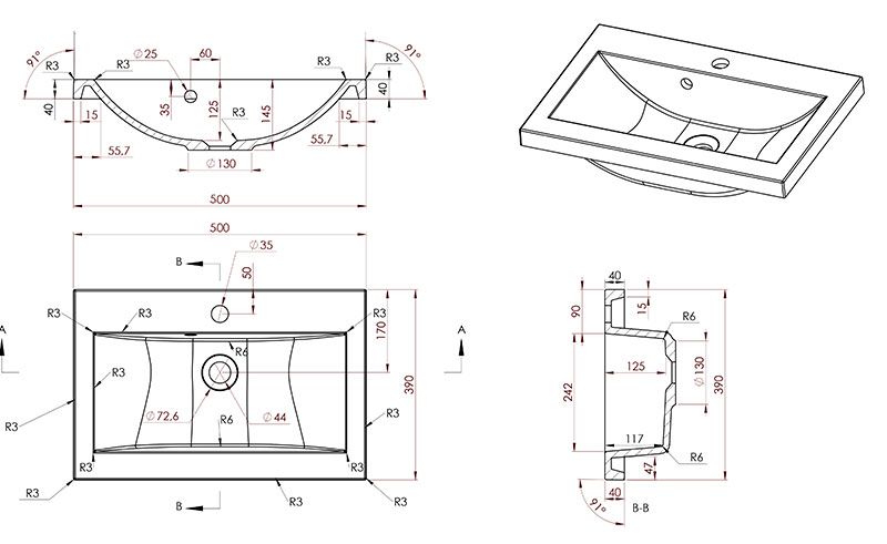 Раковина для ванной встраиваемая Буль-Буль коллекция Jody белая 1605101
