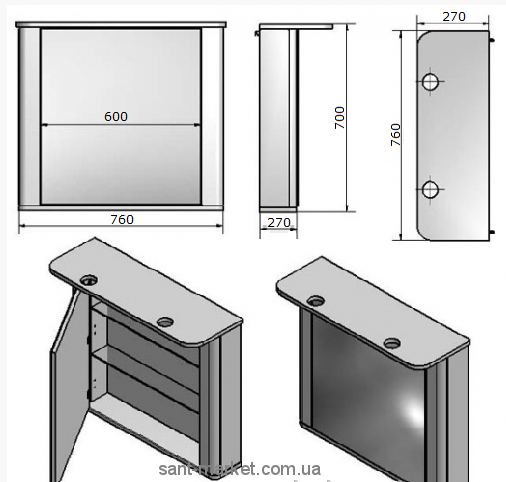 Корпус шкафчика и фасады шкафчика и пенала изготовлены из МДФ, покрытие - стойкая к истиранию виниловая пленка. Фурнитура с доводчиком "Linken System" LS Box. Корпус зеркального шкафчика и пенала изготовлены из влагостойкой панели ДСП с меламиновым покрытием. Края защищены ПХВ кромкой. Навесной шкафчик можно установить на 2 или 4 ножки или повесить на стену. Умывальник изготовлен из искусственного камня, с отверстием под смеситель и перелив. Изготовление комплекта возможно в двух цветах:
