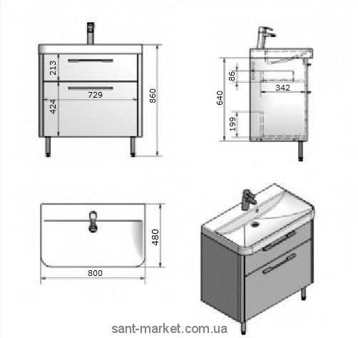 умывальник Carla 800, размер: 800х480х860 мм