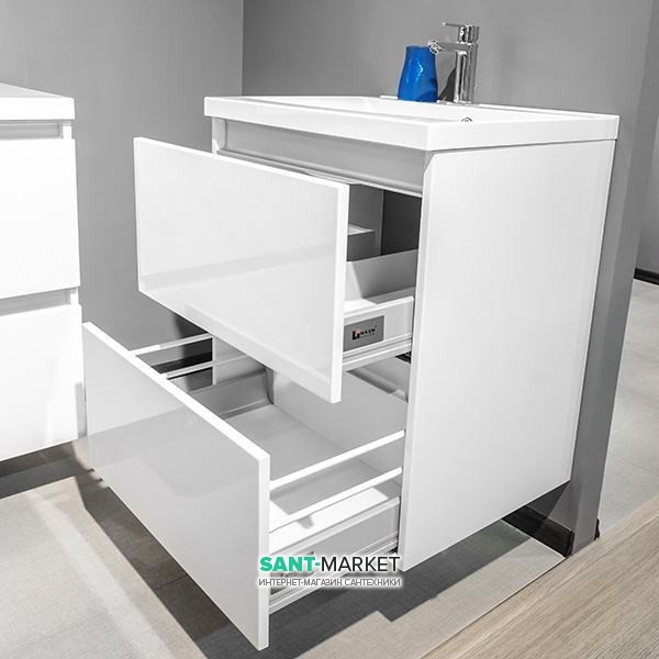 Вся мебель для ванной комнаты поставляется в собранном виде. Её можно повесить на стену или установить на пол используя ножки.