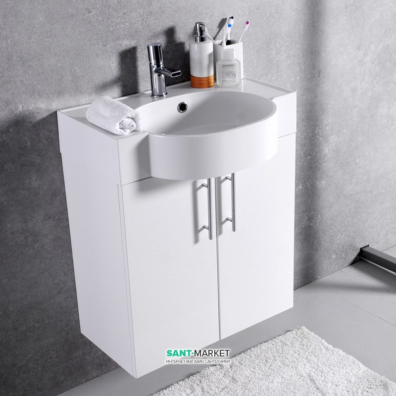 Тумба с нестандартным умывальником поможет грамотно организовать хранение туалетных принадлежностей. Комплект Ibiza выполнен из качественных комплектующих, которые не боятся эксплуатационных условий ванной комнаты. Тумба монтируется на стену или устанавливается на пол (для напольного монтажа необходимо дополнительно приобрести ножки). Внутри конструкции расположена одна полка на всю ширину тумбы. Внутреннее пространство скрывают две распашные двери.