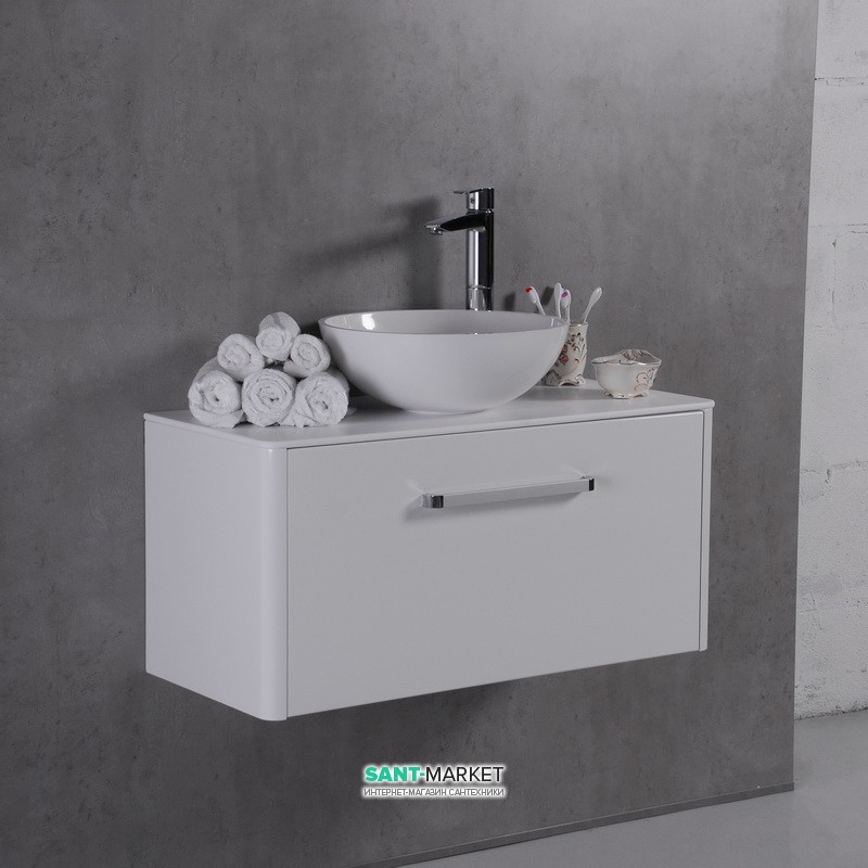 Шкафчик длиной 90 см Буль-Буль Fiji выполнен в классическом стиле с округленными углами и одним выдвижным ящиком на доводчиках. Ящик глубокий и предназначен для полотенец или бытовой химии. Округленные углы шкафчика удачно дополняет круглый умывальник Mona из искусственного камня.