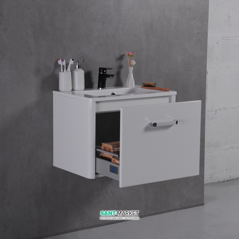 Шкафчик длиной 60 см, является самым маленьким в коллекции Буль-Буль Fiji, выполнен в классическом стиле с округленными углами и одним выдвижным ящиком на доводчиках. Ящик глубокий и предназначен для полотенец или бытовой химии. Округленные углы шкафчика удачно дополняют умывальник из искусственного камня в таком же стиле. Сам умывальник имеет не большую чашу и два не больших крыла, на которых можно разместить средства по уходу за лицом и телом.