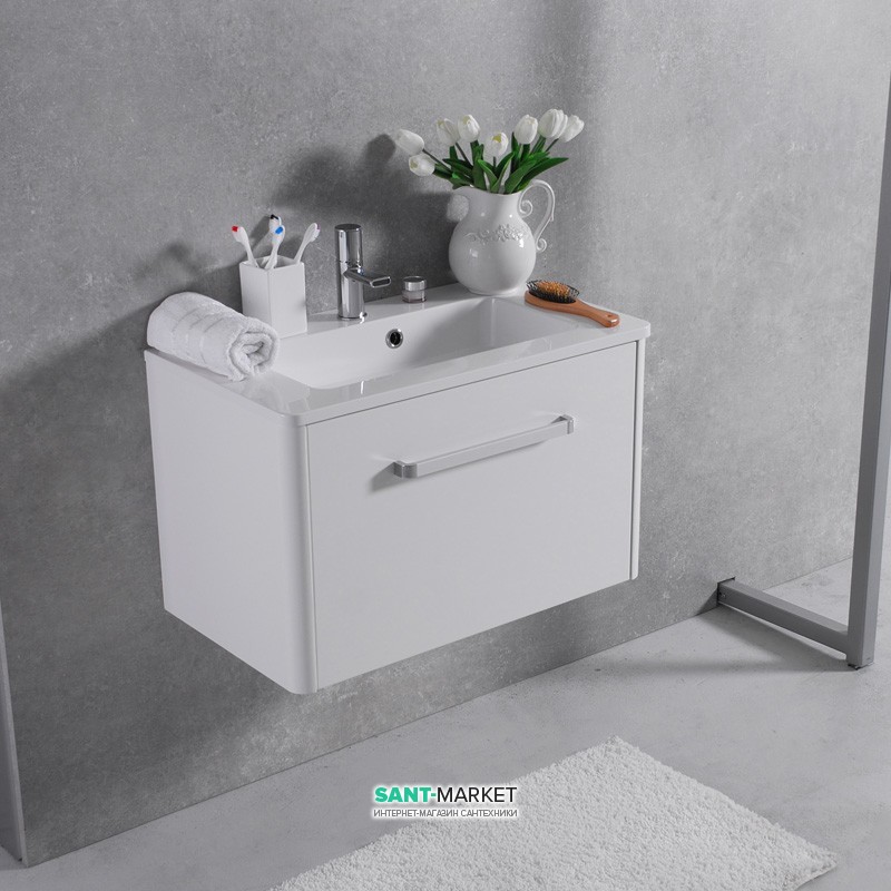Тумба подвесная Буль-Буль Fiji 692x395x420 с раковиной Annabelle искусственный камень белый