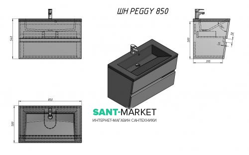Тумба подвесная Буль-Буль Cyprus 840х300 (470)х600 с раковиной Peggy 850 белый