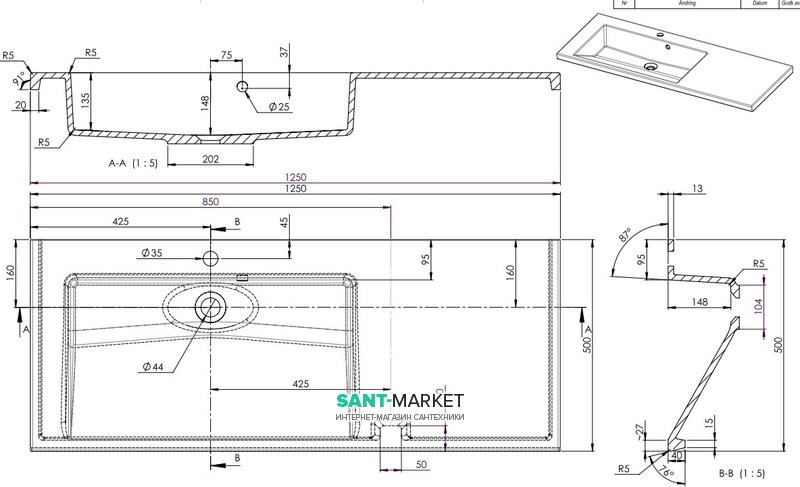 1) Раковина Peggy 1250, с выдвижными ящиками