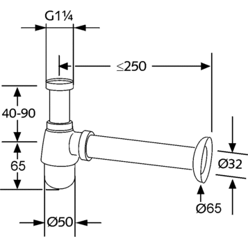 Бутылочный сифон для биде G 1 1/4 Kludi хром