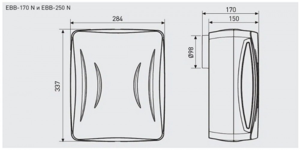Серия EBB-N включает в себя три модели 100, 170 и 250, которые в свою очередь могут оснащаться таймером или гигростатом: