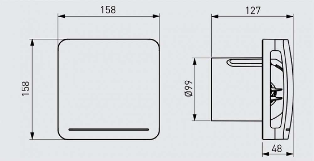 - Модификация: декоративная панель, плавная регулировка скорости, таймер выключения (от1 до 30 минут), обратный клапан, датчик влажности, шнуровой выключатель