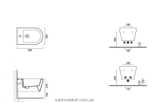 Биде подвесное Catalano коллекция Zero 55х35х42 с переливом BS55