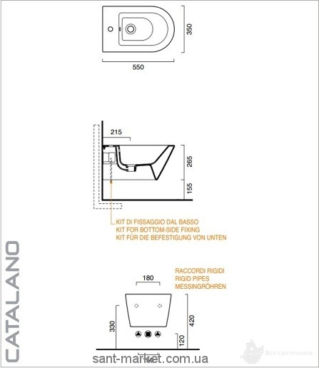 Биде подвесное Catalano коллекция Zero 55х35х42 с переливом BS55N