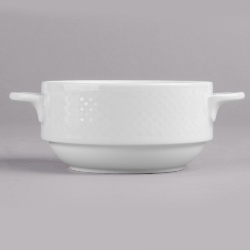Эта суповая чашка из белого фарфора Easy White от Villeroy & Boch 9 унций, сочетающая изысканную текстуру с простыми силуэтами, станет идеальным решением для столовой посуды в вашем ресторане изысканной кухни. Этот предмет свежего белого цвета является профессиональным и привлекательным решением для сервировки вашего ресторана, отеля или обеденного зала загородного клуба. Его простой силуэт и цвет создают контраст, позволяя вашим ярким свежим блюдам стать центральным элементом любой обеденной зоны. Используйте эту чашку, чтобы подавать супы и тушеные блюда. Коллекция Easy White отличается тонким рельефным рисунком, призванным добавить визуальный интерес и текстуру к вашей настольной презентации. Подавайте его отдельно или сочетайте это изделие с остальной частью коллекции Easy White для привлекательной и профессиональной презентации.