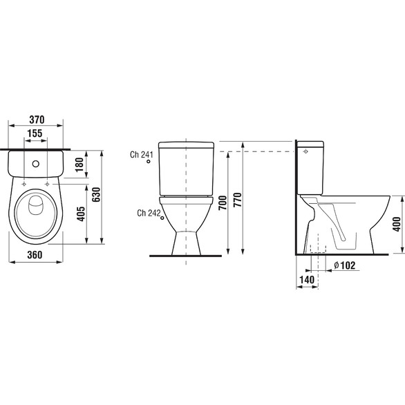 1) Чаша унитаза-компакт Jika Lyra Plus без бачка керамика белый