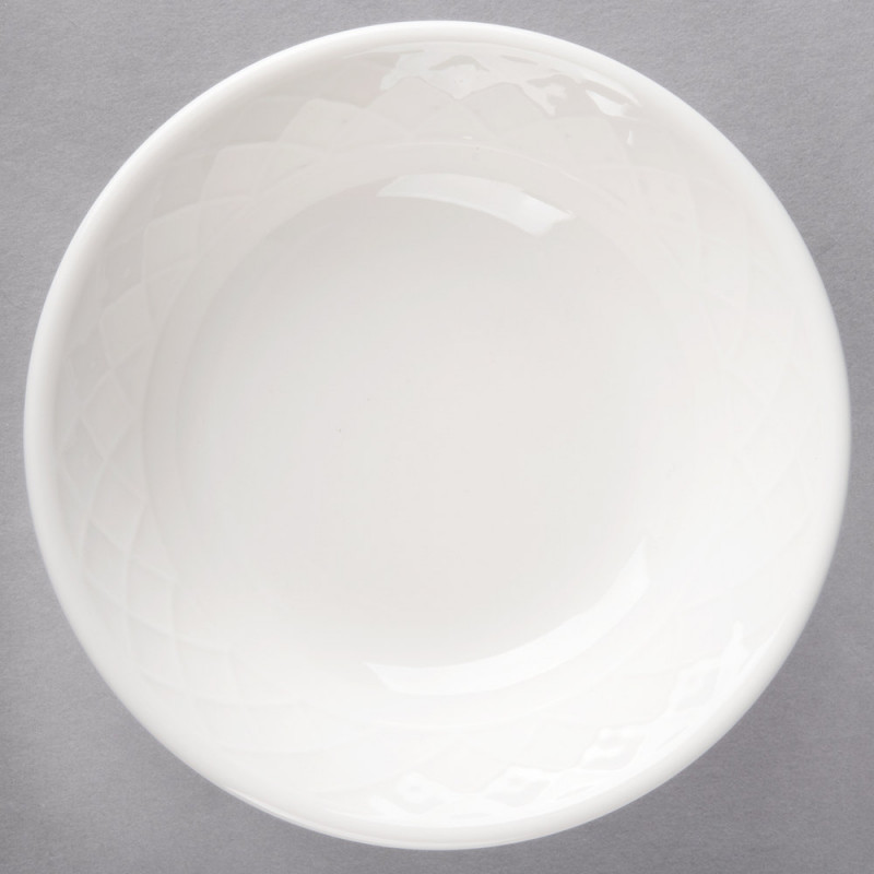 Этот предмет свежего белого цвета является профессиональным и привлекательным решением для сервировки вашего ресторана, отеля или обеденного зала загородного клуба. Его простой силуэт и цвет создают контраст, позволяя вашим ярким свежим блюдам стать центральным элементом любой обеденной зоны. Используйте эту миску, чтобы подавать небольшие салаты, гарниры или выпечку. Этот предмет украшен привлекательным перекрещивающимся узором, который обеспечивает тонкую, элегантную детализацию, добавляя визуальный интерес к вашей настольной презентации. Подавайте его отдельно или сочетайте это изделие с остальной частью коллекции Bella для привлекательной и профессиональной презентации.