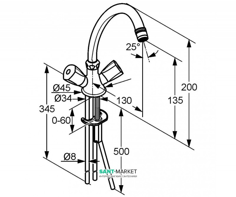 - жёсткий подвод воды 8мм