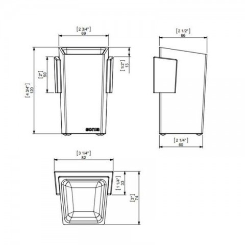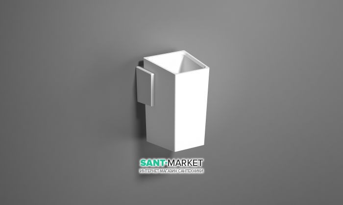 Основание (стакан) аксессуара сделано из искусственного камня снежно-белого цвета. Этот материал не боится появления царапин, трещин, сколов и других повреждений, возникающих из-за неаккуратной эксплуатации. Верхняя грань стакана слегка скошена по направлению от стены, что лишь придаёт аксессуару элегантности. Ширина основания – 80 мм, высота – 120 мм.