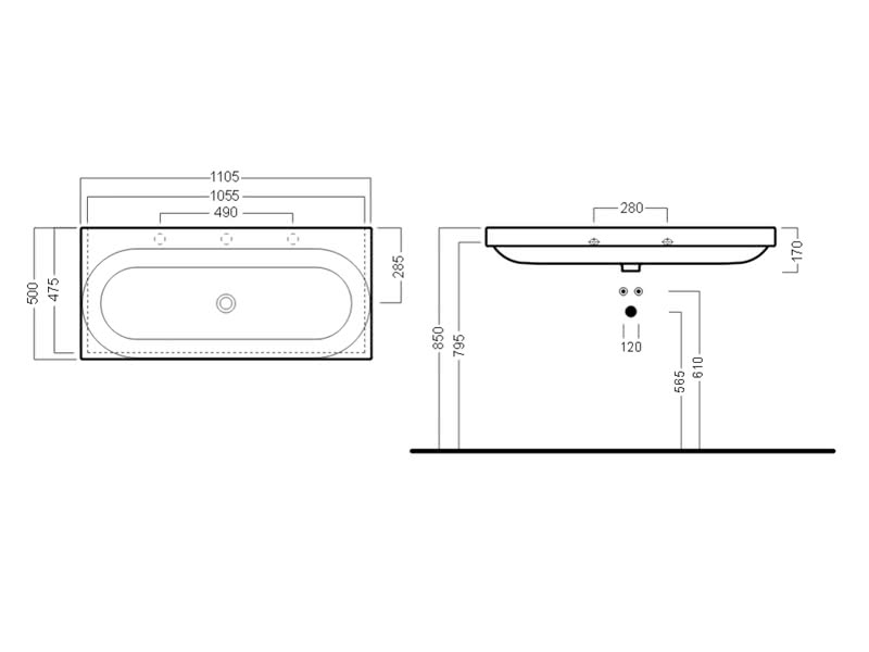 Раковина подвесная на 110 см HATRIA DAYTIME Y0YQ01. Умывальник с отверстием перелива, без отверстия под смеситель, три центральных отверстия намечены. Устанавливается на стенах, столешницах, подстольях, мебели и специальных консолях.