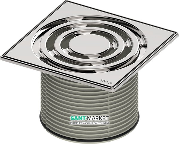 - Декоративная решетка TECEdrainpoint S из тянутой нержавеющей стали, материал 1.4301 (304), размеры 142 x 142 мм с полированной поверхностью, класс нагрузки K3 (нагрузка до 300 кг).