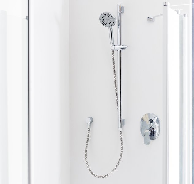 Два практичных изделия в одном. Служит в качестве вывода для воды у душевых шлангов, а также выполняет функцию держателя для ручного душа. Подходит ко всем смесителям скрытого монтажа.