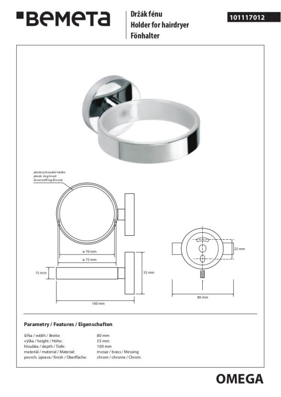 Держатель для фена Bemeta Hotel латунь хром глянец 101117012
