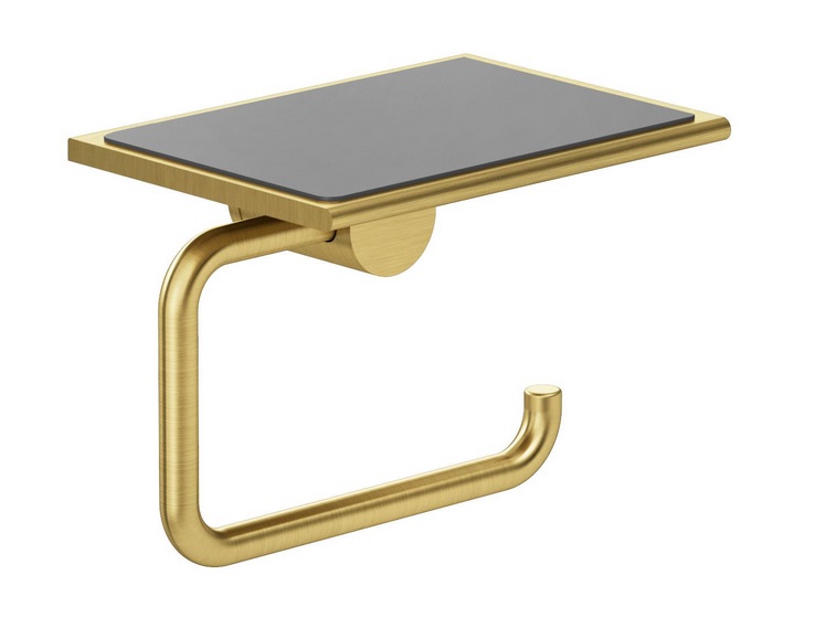 Держатель для туалетной бумаги Kludi Vela R с полкой брашированное золото PVD