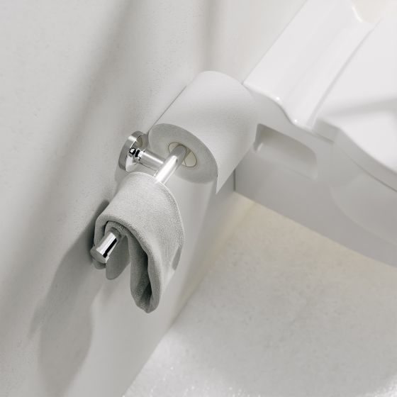 Также высоко этот аксессуар оценят люди, ценящие практичные решения и личный комфорт, но использующие ограниченные по площади ванные или туалетные комнаты. Держатель для туалетной бумаги E-PLUS – один из лучших вариантов эффективной организации пространства. Ещё одним его плюсом и примером продуманного решения служит зеркальная конструкция элементов. Руководствуясь собственными привычками и личными ощущениями комфорта, вы можете выбирать, какую сторону удобнее использовать в качестве бумагодержателя, а какую – для полотенца. Также на концах несущей оси предусмотрены небольшие конструктивные утолщения – они препятствует случайному соскальзыванию полотенца или рулона с держателя.