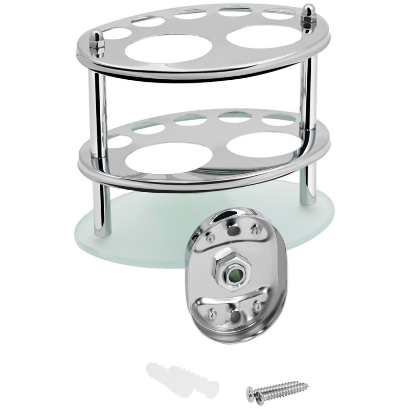 Держатель для зубных щеток KRM Elbe - ACG2918 от Kroner имеет двухъярусную конструкцию, поэтому зубные щетки и паста будут прочно зафиксированы. Выполнено пять отверстий для зубных щеток и два — для зубной пасты. Хромированное покрытие предотвратит образование коррозии и грязи.
