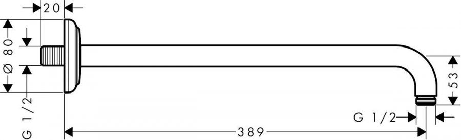 1) Держатель верхнего душа Hansgrohe Axor Montreux 389 мм хром