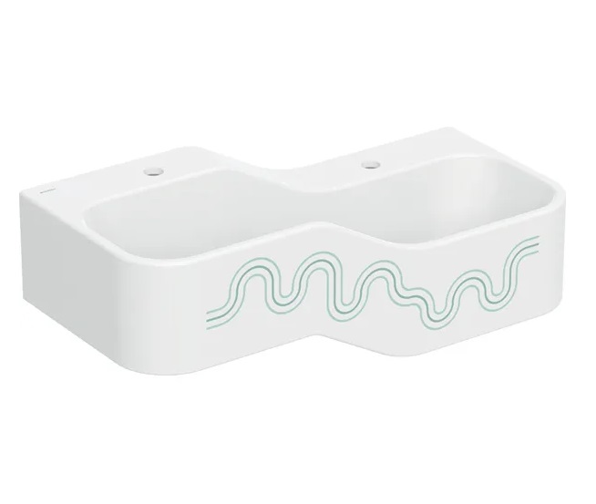 Детская раковина Geberit Bambini 90х39 см с двумя зонами Varicor белый альпийский декор зеленый лес/светло-зеленый 502.974.79.1