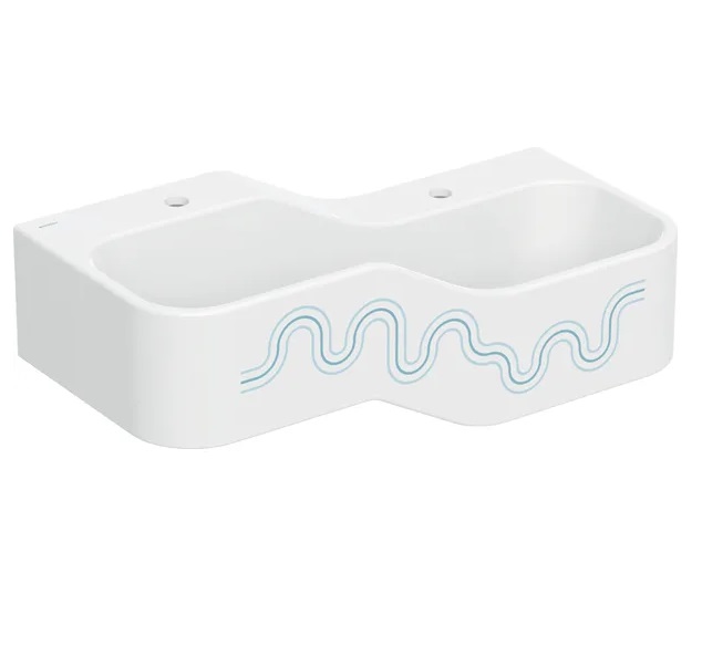 Детская раковина Geberit Bambini 90х39 см с двумя зонами Varicor белый альпийский декор синий океан/голубой 502.974.SX.1