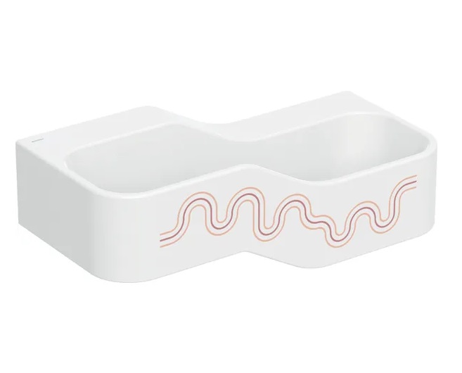Детская раковина Geberit Bambini 90х39 см с двумя зонами Varicor белый альпийский декор карминово-красный/оранжевый