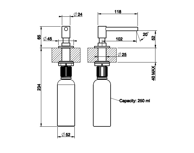 Диспенсер для моющего средства Gessi врезной 250 мл черный металл брашированный