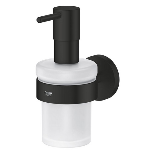 Диспенсер для жидкого мыла Grohe Essentials 160 мл с держателем металл черный матовый/матовое стекло