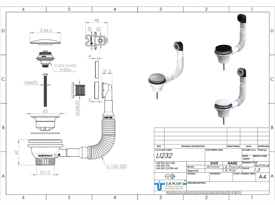 Донный клапан click-clack с переливом L.B.Plast пластик матовый черный