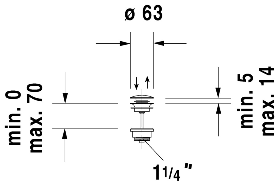 1) Донный клапан для раковины с переливом Duravit нажимной хром