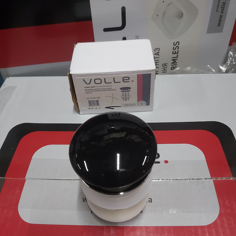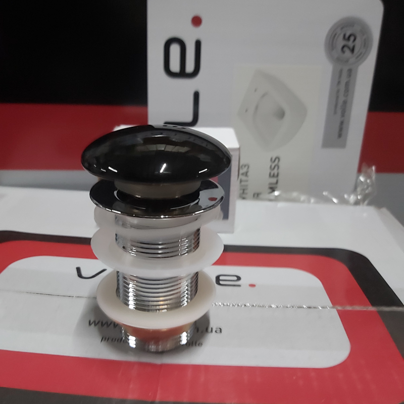 1) Донный клапан для раковины Volle click-clack с керамической крышкой черный