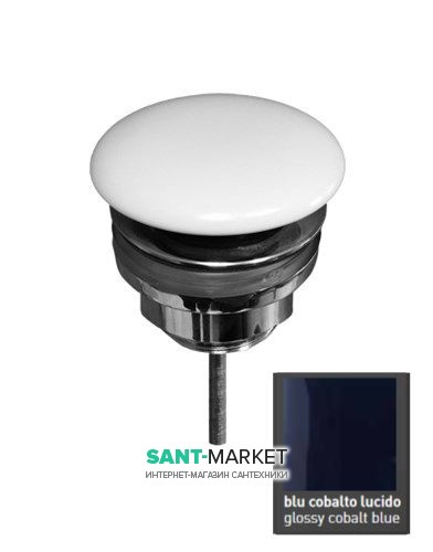 Донный клапан Kerasan клик-клак с накладкой из керамики голубой кобальт глянцевый 923377