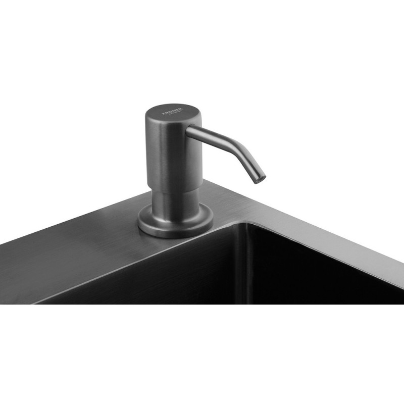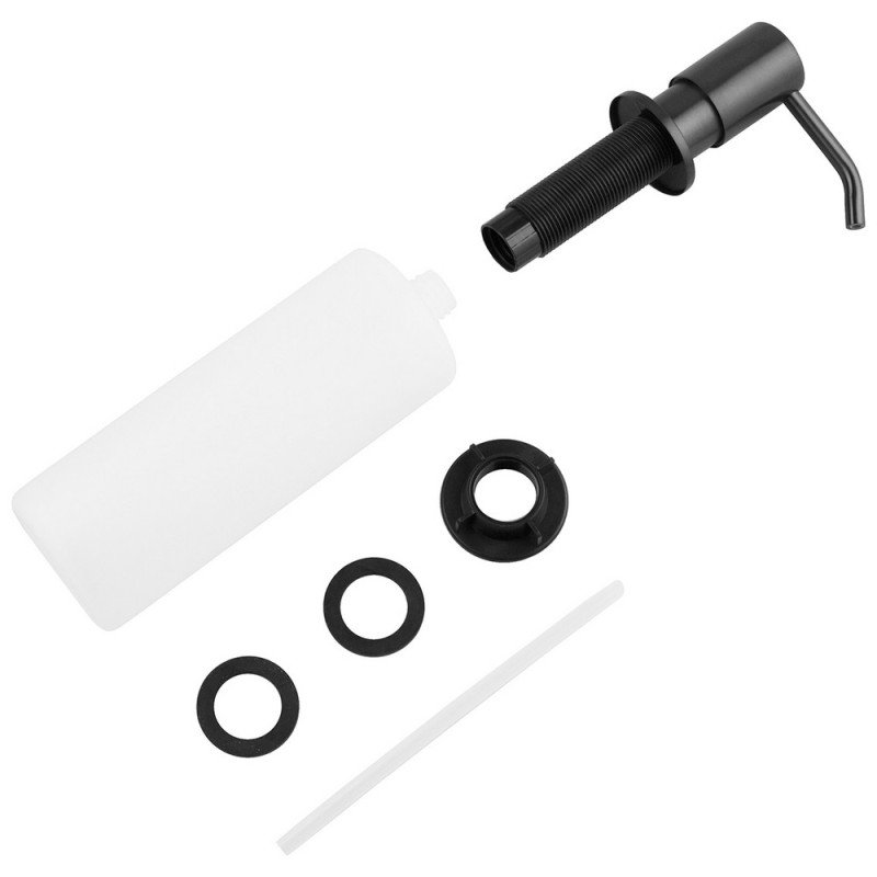 Он состоит из пластиковой емкости 480 мл, и помпы - из высококачественной нержавеющей стали с PVD покрытием, которая ее герметично закрывает. Оснащен системой подачи моющего средства с дополнительным каналом, исключающим контакт жидкости с латунными деталями. Аксессуар обладает повышенной прочностью, устойчив к агрессивному воздействию внешней среды и рассчитан на длительную эксплуатацию. Максимальная толщина столешницы 60 мм. Диаметр отверстия для установки 25 мм.