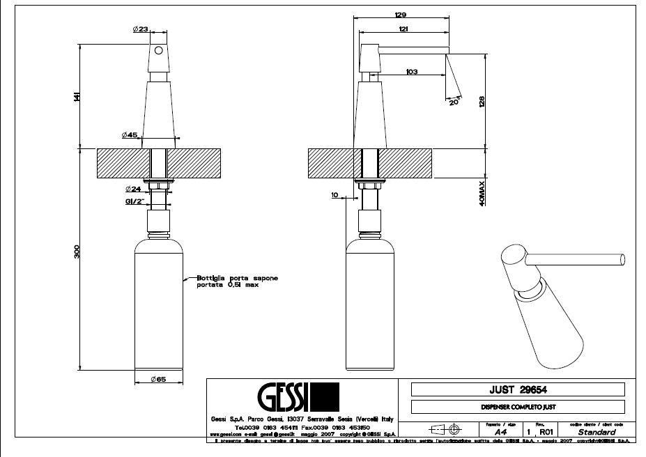 1) Дозатор для жидкого мыла Gessi Just врезной 500 мл хром