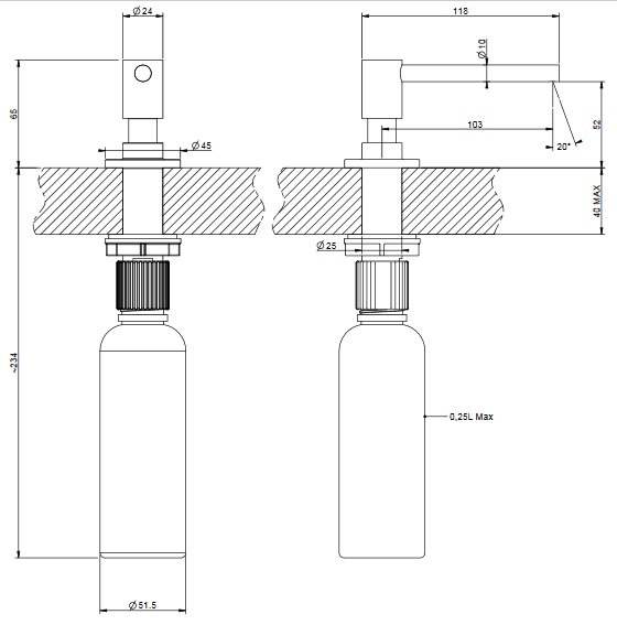 1) Дозатор для жидкого мыла Gessi Oxygene Cucina врезной 250 мл хром