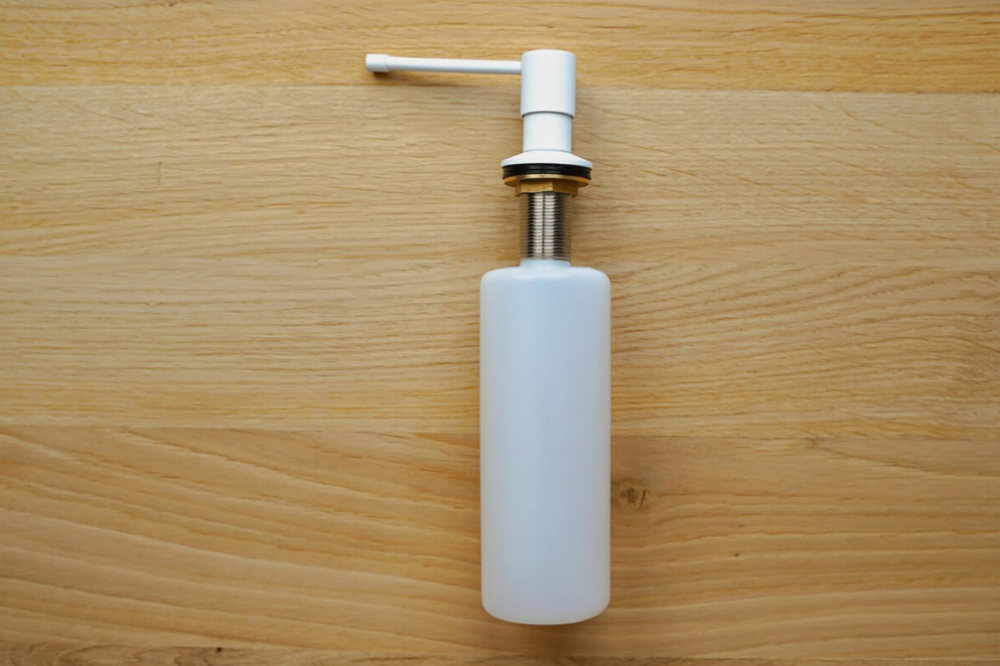 Вращающийся наконечник на 360°. Дозатор имеет свободно вращающийся наконечник, что обеспечивает эргономику использования. Длинная трубка позволяет легко настроить удобный угол при мытье посуды, а также собирает нужное количество жидкости.