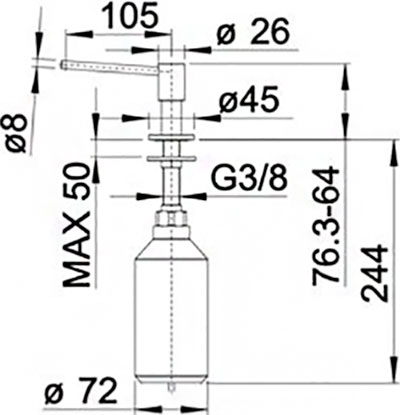 Дозатор для моющих средств Blanco Piona устанавливается на кухонную мойку или на столешницу и позволяет освободить пространство рядом с мойкой от ёмкостей с моющими средствами.