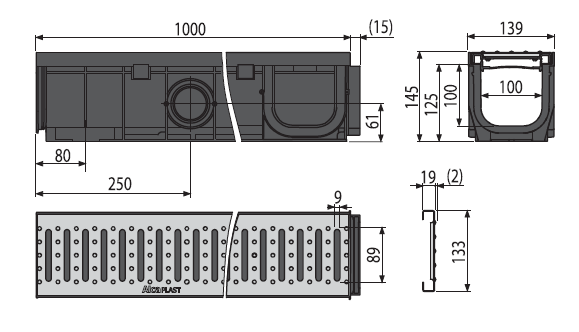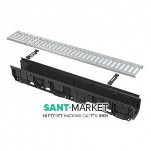 AVZ102-R102 дренажный канал 100 мм с пластиковой рамой и оцинкованной решеткой «C» профиль A15