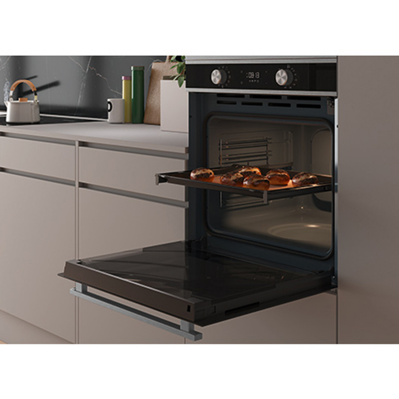 Электрический духовой шкаф Franke Smart FSM 97 P XS (116.0606.096) черное стекло / нержавеющая сталь на 71 литр с 11 функциями и тремя стеклами дверцы. Модель имеет 2 автоматические программы выпечки и 9 функций. Он предлагает на выбор пять уровней выпечки. Оборудован горячим воздухом и пиролитической очисткой. Духовка имеет черное стекло и декоративные ручки и детали из стали. Встраиваемая духовка Franke Smart оснащена системой мягкого закрытия Smooth2Close и безопасной дверцей с тройным остеклением. Обеспечивает удобное выдвижение противня за счет телескопических направляющих (на 1 уровне).
