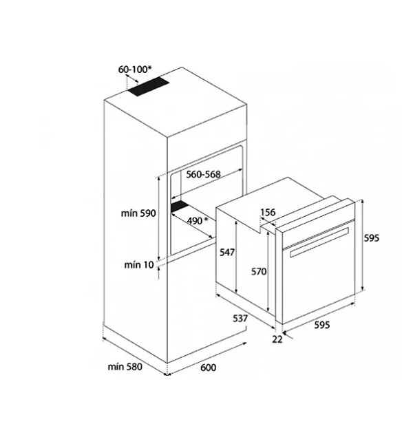 - Габаритные размеры: 595x595x559 мм