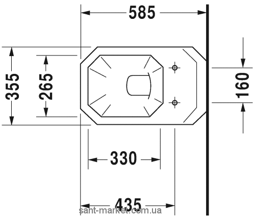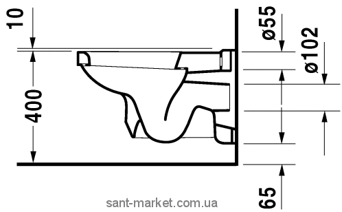 - если не используется инсталляция, рекомендуется крепление для подвесного унитаза с колпачками в хроме Duravit 1930 (0065001000)