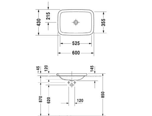 Раковина для ванной встраиваемая Duravit коллекция DuraStyle белая 0372600000