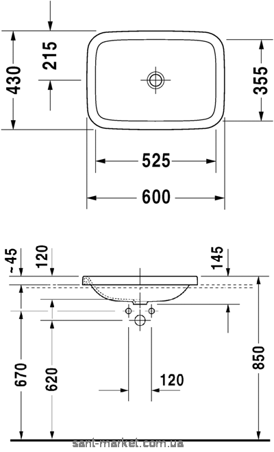Раковина для ванной встраиваемая Duravit коллекция DuraStyle белая 372600000