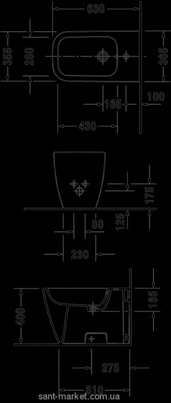 Биде напольное Duravit коллекция Happy D.2 63х37х40 с переливом 2259100000